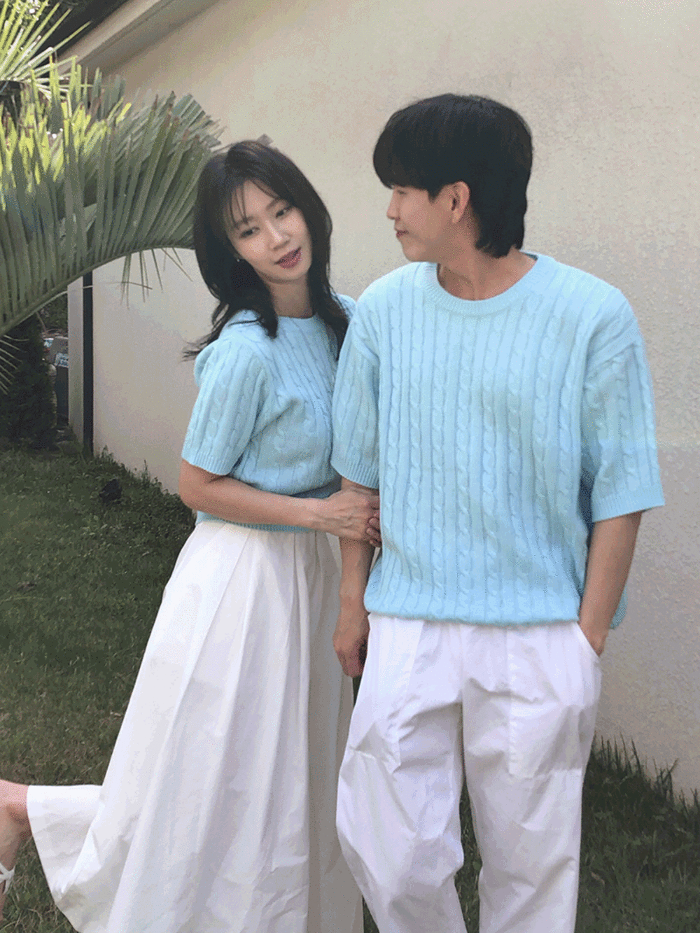 [여름시밀러룩] 컬러팝 꽈배기 니트 커플시밀러룩 (5 color)