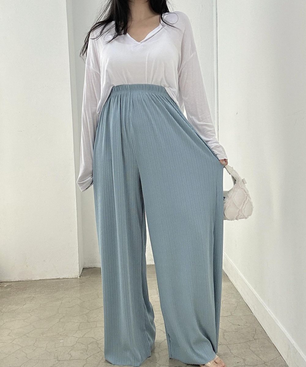 빅사이즈 아이스 냉장고 여리 플리츠 허리 밴딩 와이드핏 시원 여름 롱 팬츠