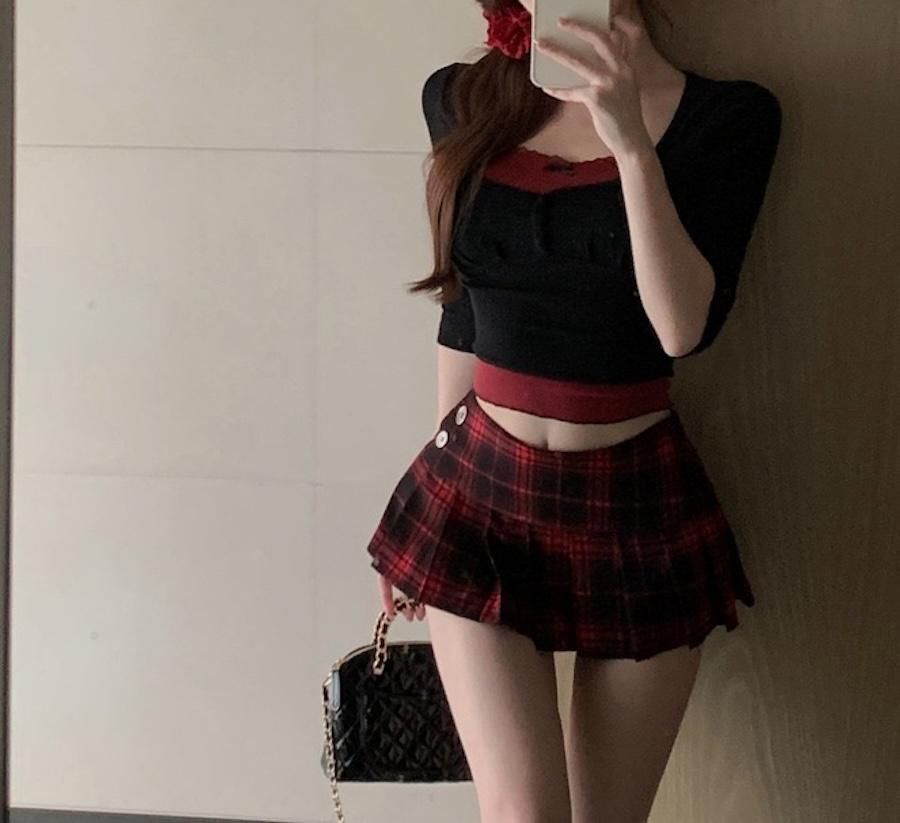 체크무늬 플리츠 미니스커트&배색크롭탑 코디세트 핫걸패션 투피스 섹시투피스