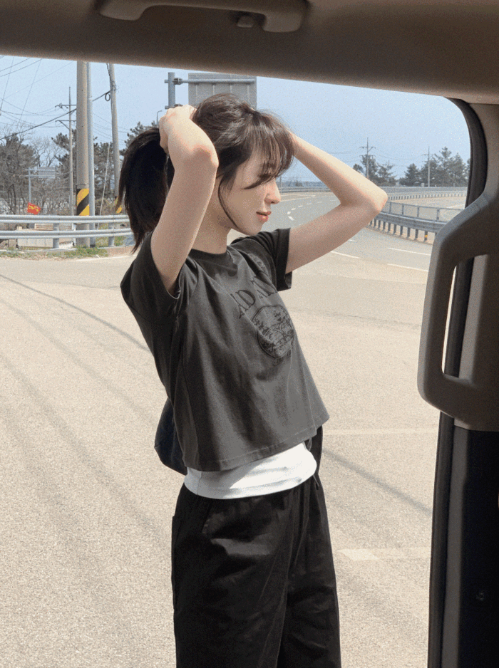 [1천장판매] 트립 프린팅 크롭 반팔T
