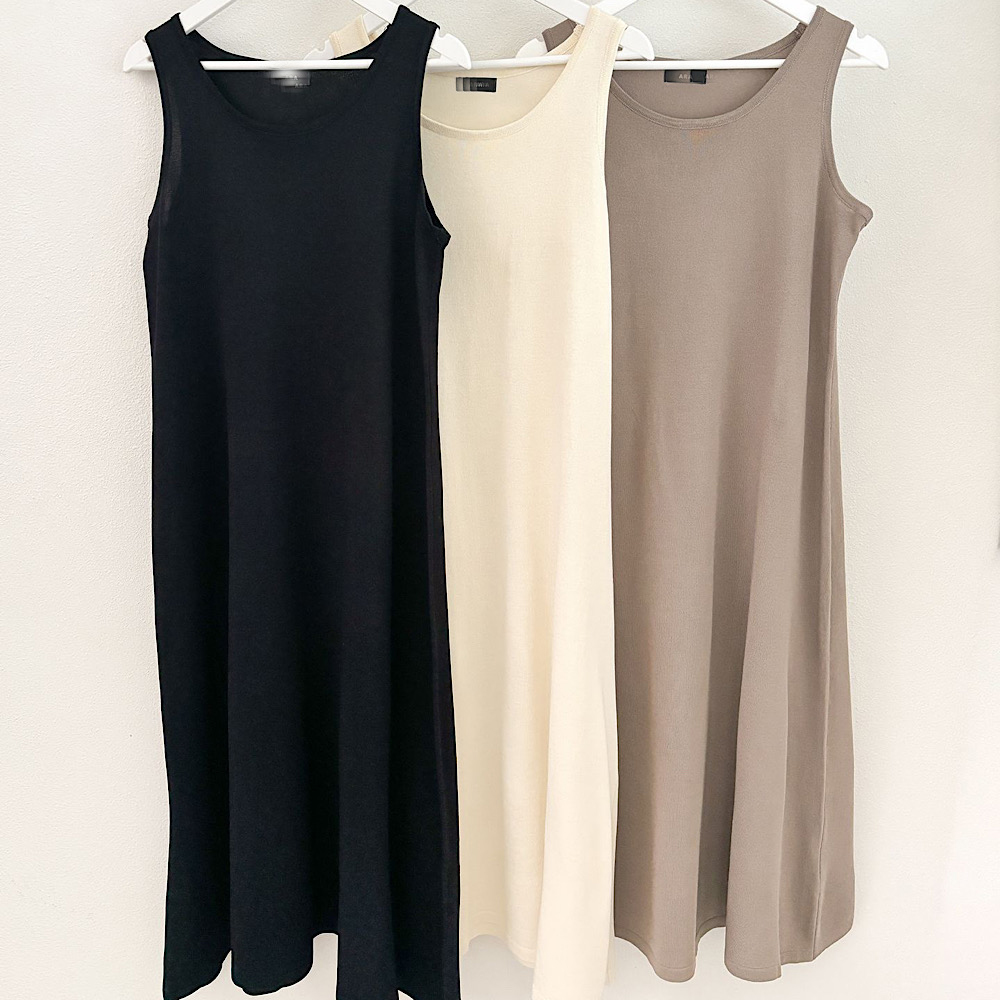 나시 이너 캐주얼 레이어드 베이지 검정 아이보리 A라인 플레어 니트 민소매 롱 원피스
