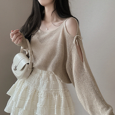 [러블리여리!] 어깨트임 리본 시스루 부클 니트 5color