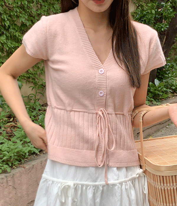 므델❤️모리걸 브이넥 허리끈 반팔 니트 2COLOR