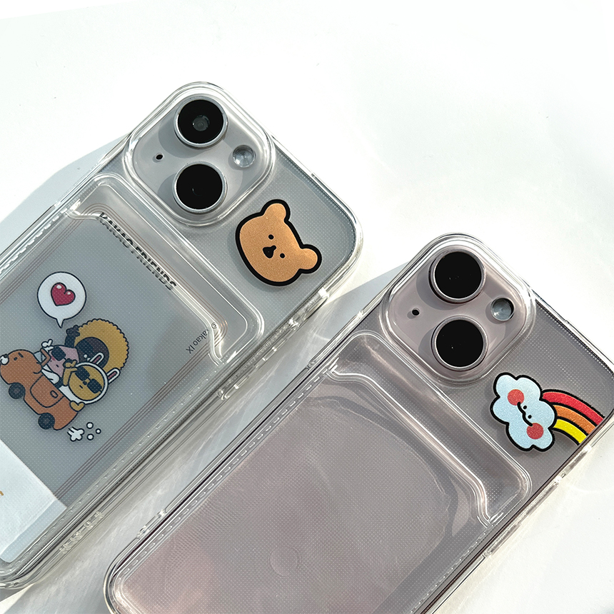 [포켓젤리] 낙서 무지개 곰돌이 귀여운 폰 케이스 아이폰 16 17 갤럭시 S24 S25 카드수납 커플 친구 선물