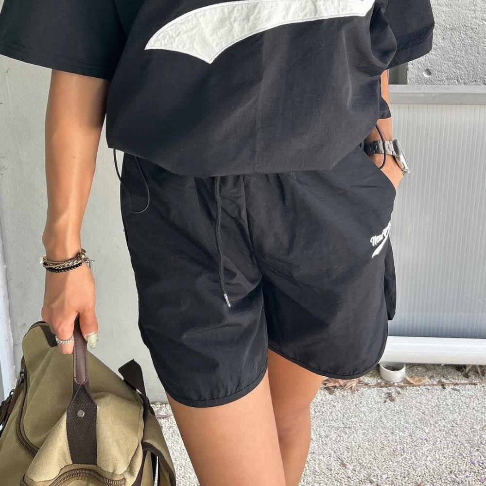 여자 블록코어룩 스포티 숏팬츠 나일론 체육대회 반바지