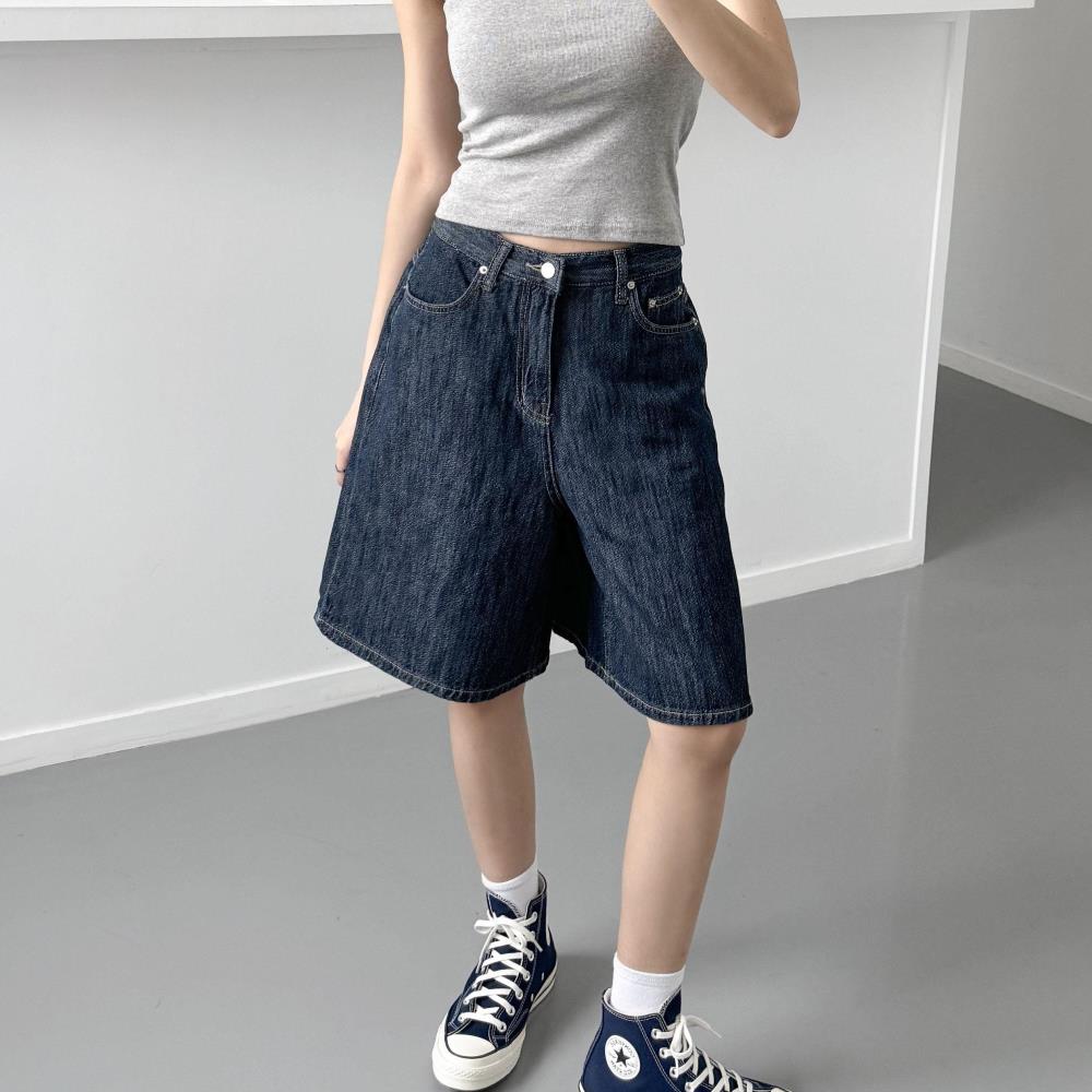 여자 여름 버뮤다팬츠 와이드 얇은데님 연청 청반바지