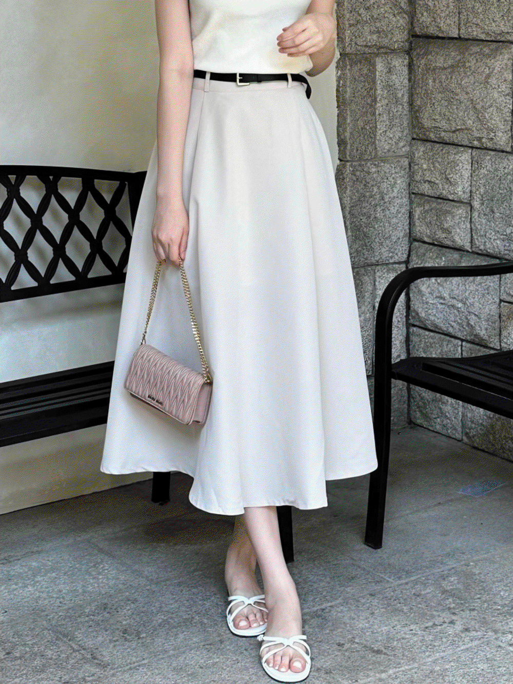 [벨트set/하객룩] 리썸 플레어 롱 스커트 3colors (데이트룩/데일리룩/여름스커트)