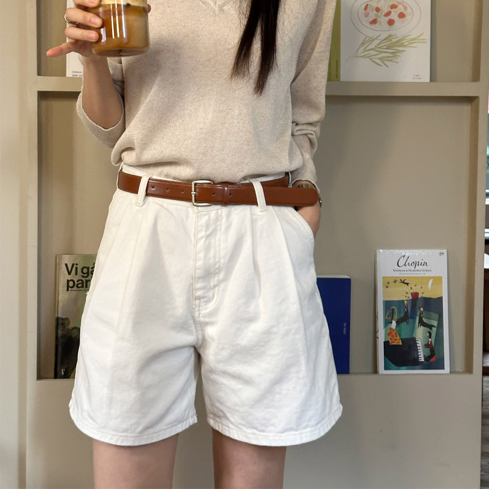 아이보리 핀턱 반바지 하이웨스트 화이트 숏팬츠 버뮤다팬츠 흰바지 올드머니룩 프레피룩
