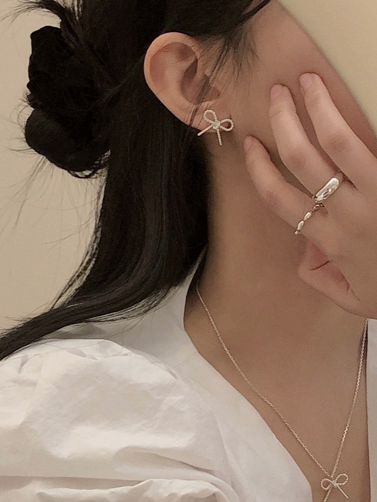 925실버 리본 귀걸이 스터드 은귀걸이 포인트 데일리 리본 이어링