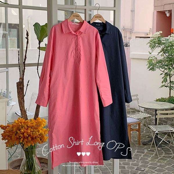[MADE] 신디 카라 반오픈 코튼 셔츠 롱원피스(44~100) (데일리-캐주얼-셔츠-베이직셔츠원피스-루즈핏원피스-빅사이즈셔츠원피스-긴팔원피스-코튼셔츠-간절기-레이어드원피스)