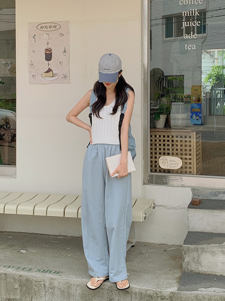 [25-38] 덴버티 바스락 밴딩 와이드 팬츠( 여름-데일리룩-데이트룩-캐주얼룩-러블리룩-공항룩-휴가룩-휴양지룩-바캉스룩-마실룩-빅사이즈-38사이즈-자체제작-시원한-가벼운-여름팬츠 )