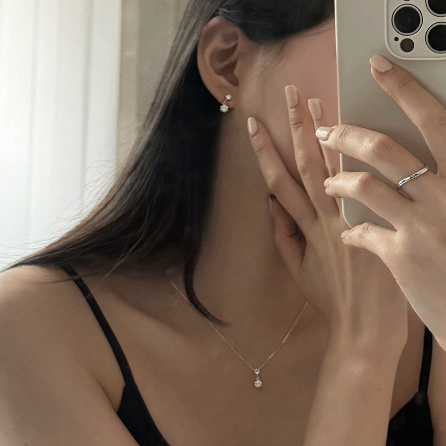 [silver 925] 미니 큐빅 귀걸이 목걸이 세트 / 심플 데일리 하객룩 실버 여름