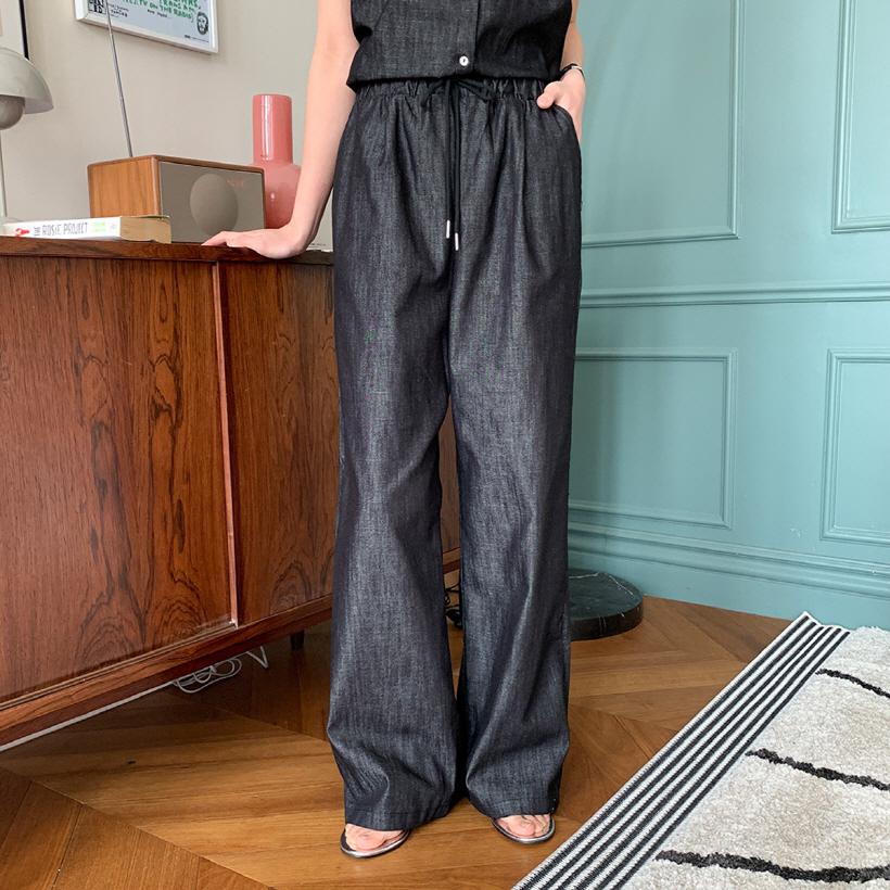 구로치 허리밴딩 논페이드 와이드 데님 팬츠