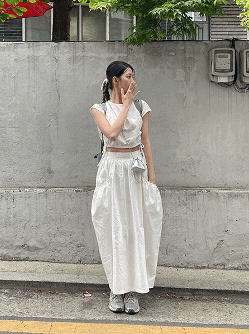 (💚여름신상/투피스세트/MD추천소장)나츠 벌룬핏 포켓 맥시 롱스커트(2colors)키큰여자추천,스커트투피스,투피스세트,셀프웨딩,하객룩,여름원피스,여름셋업,여름투피스,휴가룩,플리츠스커트,밴딩스커트