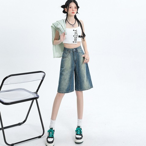 워싱 입체감 하프데님 힙한 디자인 브록시드하프데님팬츠