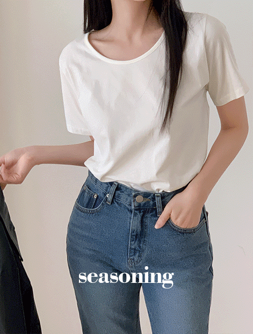 [자체제작/오늘출발/S-L]시즈닝 데일리 루즈핏 유넥 티셔츠 (데일리룩/기본티/반팔티/이너티/유넥티/레이어드티)