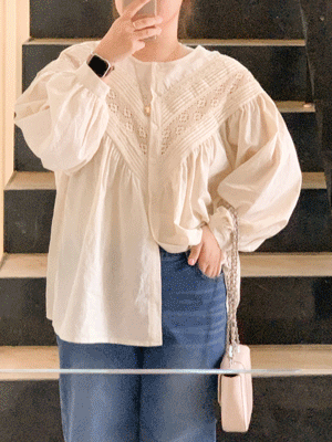 [55-100]빅사이즈 슈가 라운드 레이스 펀칭 루즈핏 오버핏 블라우스
