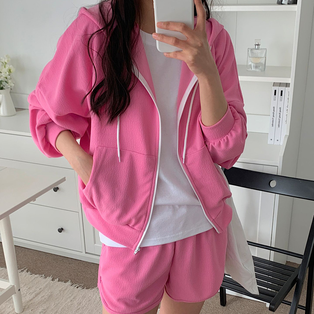 후드집업 반바지 간절기 캐주얼 캠핑룩 여행코디 핑크 네이비 비치룩 바지 트레이닝복 세트