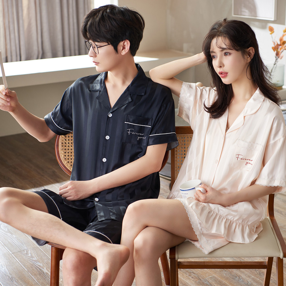 로리돌스 여름 커플잠옷. 실크 라인 반팔 홈웨어 파자마세트 여성 남성 빅사이즈 QM1405 QM1406
