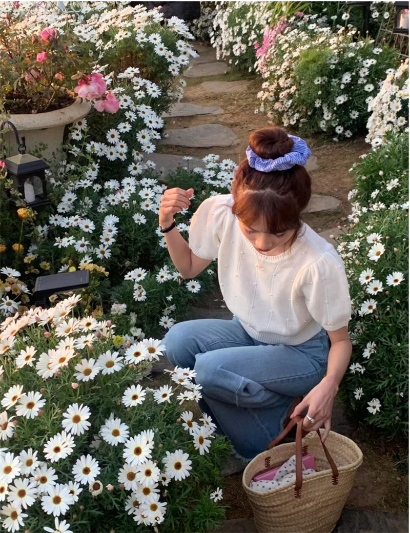핫바 여름 크롭 반팔니트 봄 가을 썸머 핑크 블랙 아이보리 하늘색 퍼프 니트탑 티셔츠 하객룩