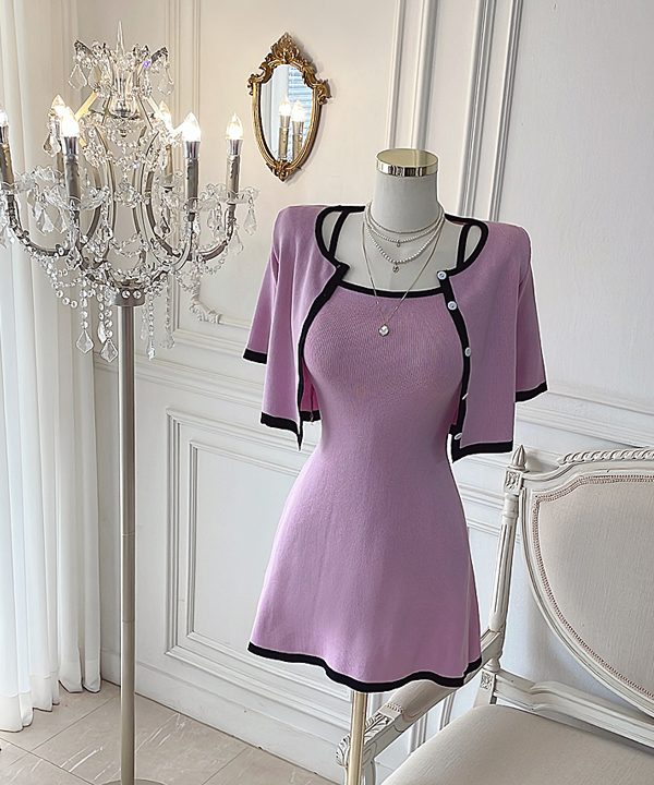 띠아 가디건 세트 미니원피스 /결혼식 하객룩 파티룩 브라이덜샤워 행사룩 여름가디건 해외여행룩 크롭니트 반팔가디건 크롭가디건 반팔티 반팔블라우스 여름니트 반팔니트 나시원피스 셋업 니트투피스