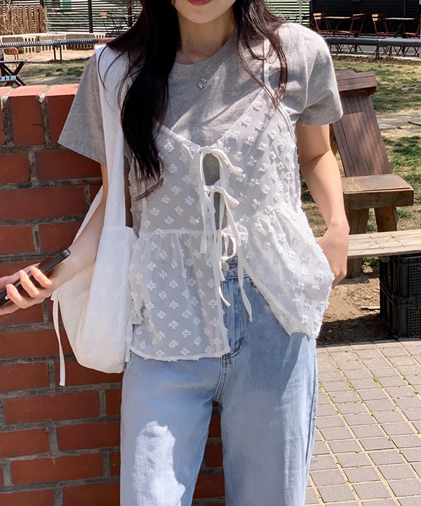 플라워 썸머 리본 레이어드 뷔스티에 나시 블라우스(2color)