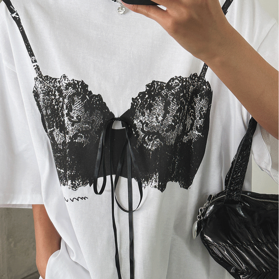 [오늘출발 화이트] 리본프린팅트임반팔티-t