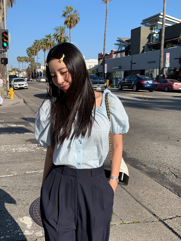 디보 리본 퍼프 블라우스