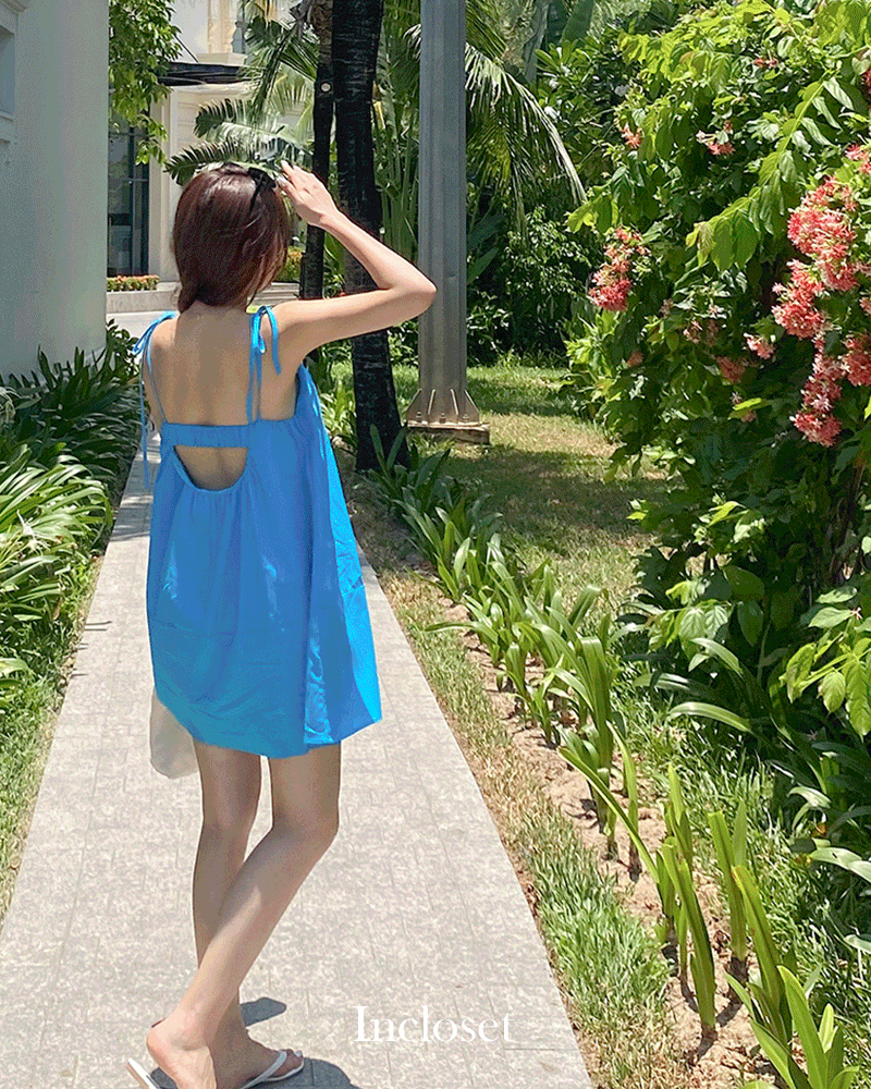 [당일출고] 소다 리본 플레어 나시 미니원피스 2color 휴양지룩/비치웨어/여름원피스