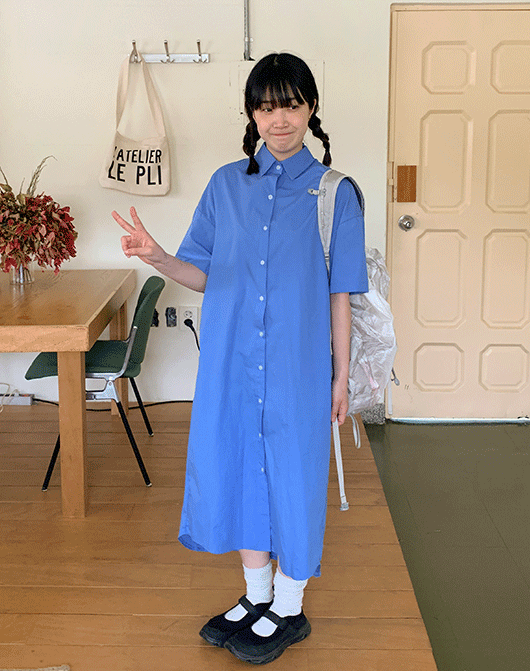 비르키 컬러 반팔 셔츠 롱 원피스 (5color)