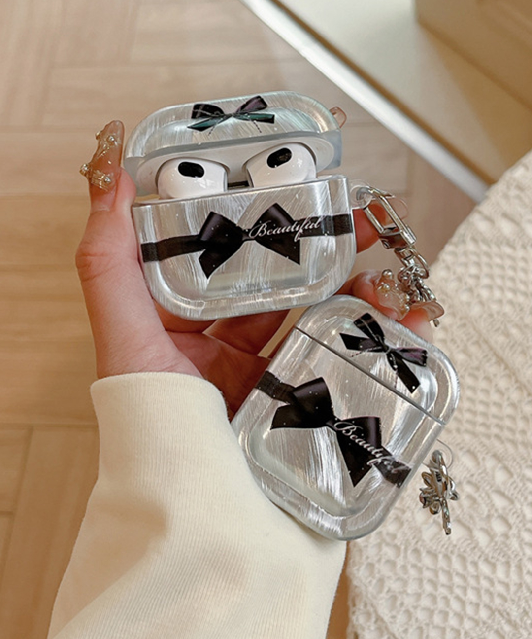 에어팟 실버 블랙 리본 나비 키링 실리콘 Y2K 유니크 키치 힙 하이틴 귀여운 심플 특이한 커플 우정 친구 선물 이어폰 애플 케이스 에어팟케이스 1세대 2세대 프로 3세대 프로2