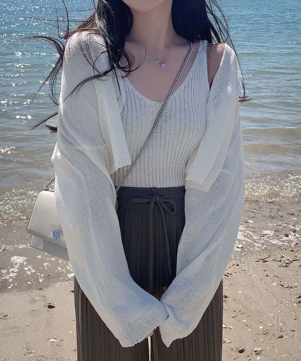 [세트가격!/주문폭주]피부에 달라붙지 않는, 부클 가디건+나시 투피스 세트