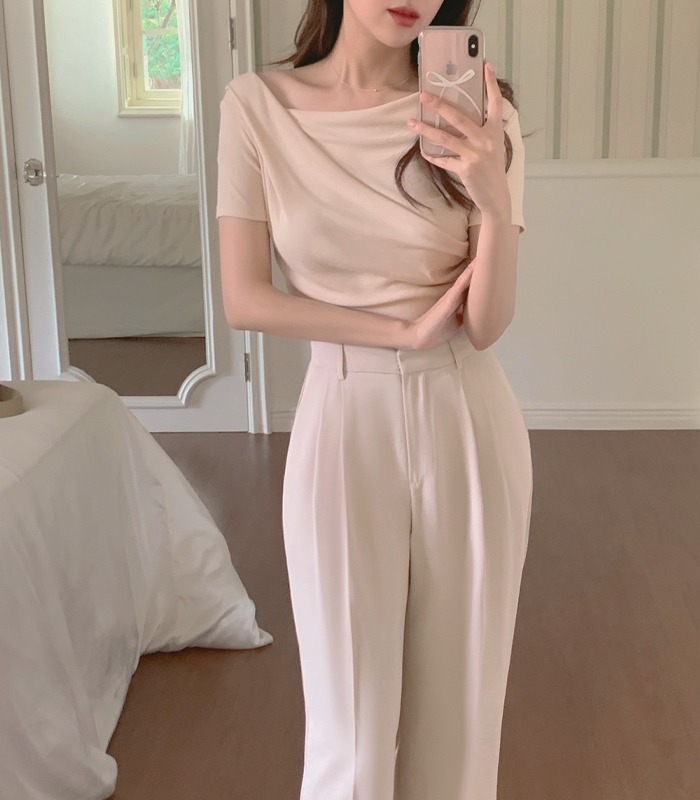 당일발송[🌿오프숄더/반팔티][MADE] 루아 언발 셔링 오프 티셔츠
