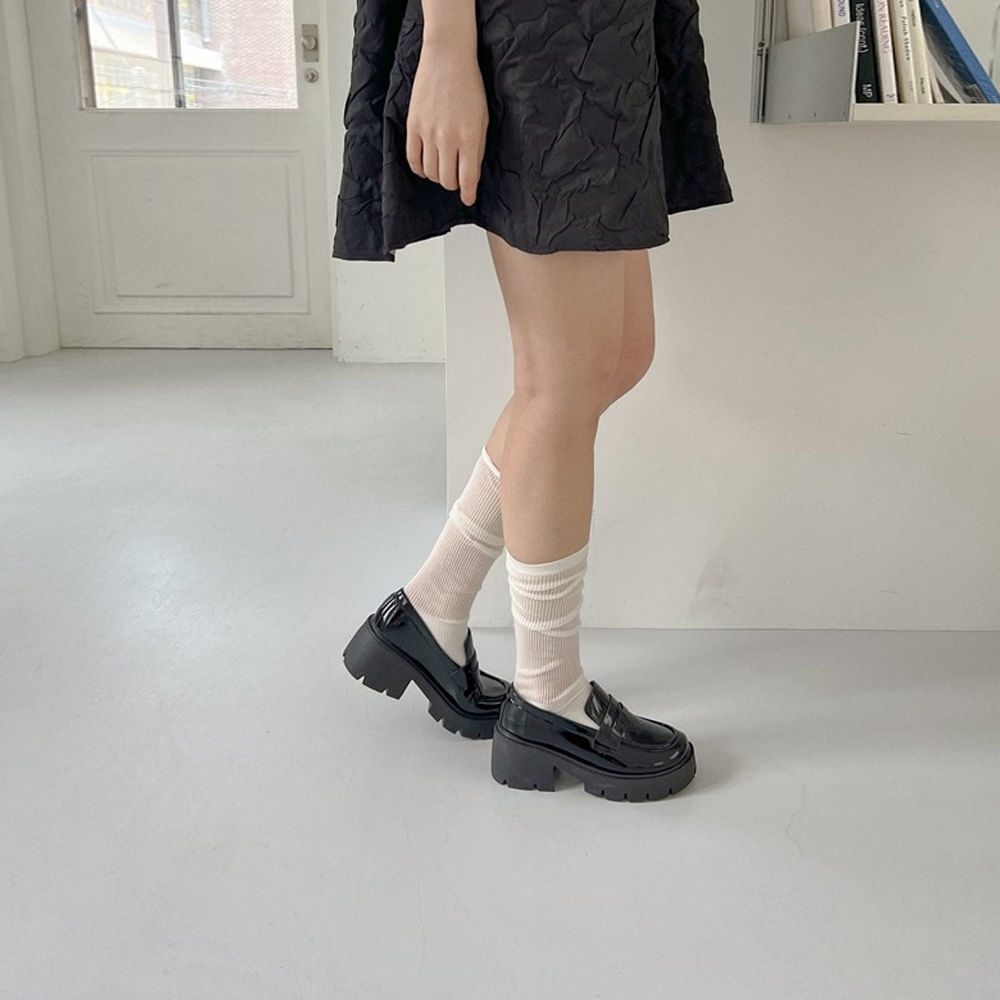 미들굽 심플 가보시 통굽 로퍼힐 (6cm, 블랙 에나멜)