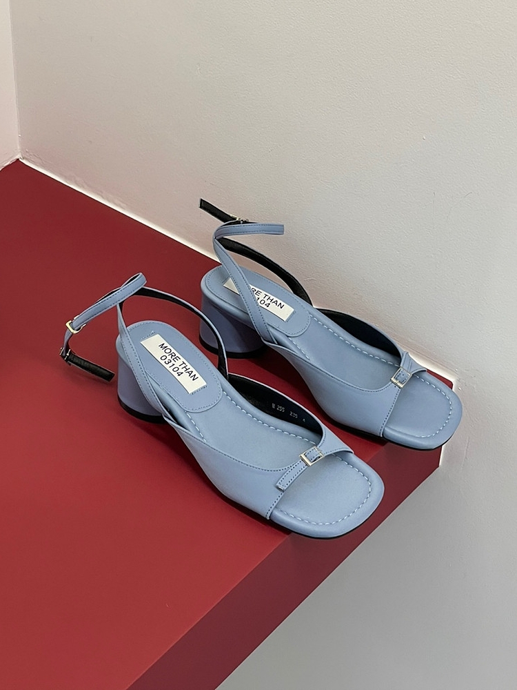 펠트 버클 벨트 미들힐 스트랩 샌들 6cm