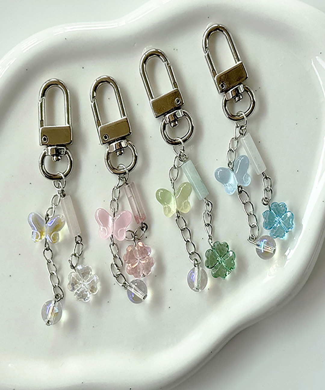 🚀당일출고🚀체인 나비 네잎클로버 원석 키링 핸드메이드 에어팟 버즈 가방 키홀더 열쇠고리