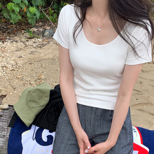 [당일발송/6만장돌파][S,M,L/기본티/이너티][MNLB] 하프 클레어 유넥 쫀쫀 슬림 반팔 티셔츠