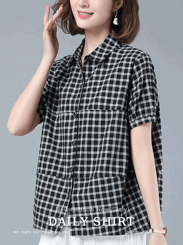 SS-3252 체크무늬 반팔 셔츠