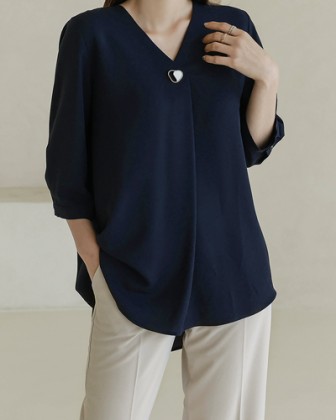 센스 하트버튼 블라우스