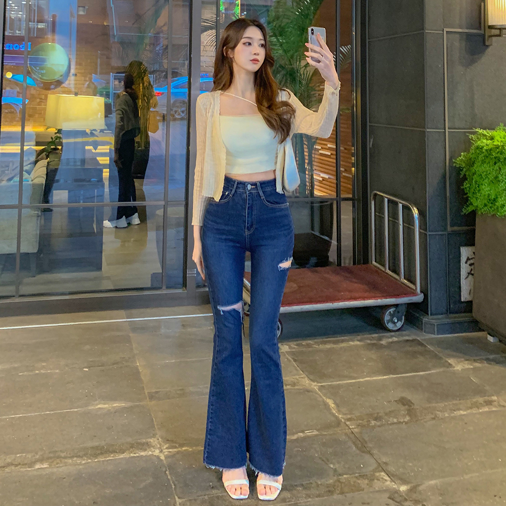 무배🚀[허얇골넓핏🔥1만돌파💥MADE] 데미지 선택 인생핏 롱 부츠컷 청바지 하이웨스트 트임 나팔 여름 데님 팬츠 찢청 가을 간절 데일리룩 데이트룩 연청 진청 S M L