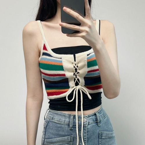 일본여행 매듭 키치 유니트 윈터 민소매 나시
