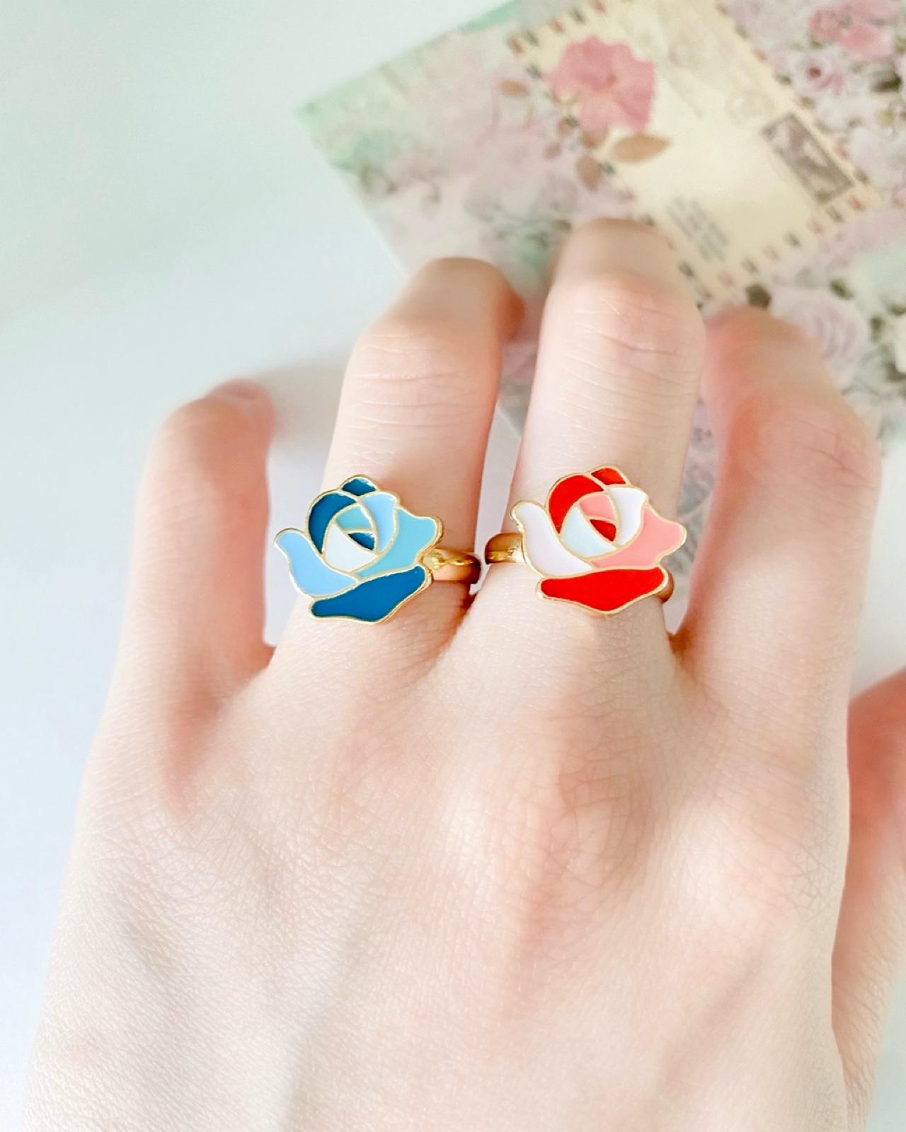 장미꽃 링 블루 레드 그림같은 에폭 플라워 반지