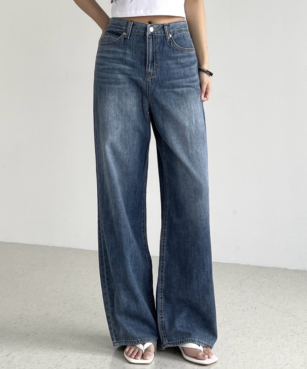 여름 청바지 여성 세미와이드 통 청바지 여자 하이웨스트 얇은 워싱 중청 일자 데님팬츠