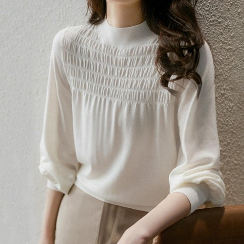 여자 프론트 흰색 잔주름 봄가을 검정 모크넥 니트