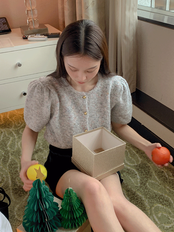 [made🎈/반팔니트🦋/10차입고!/빈티지유니크💡] 캐빈 크롭 퍼프 반팔 니트 가디건