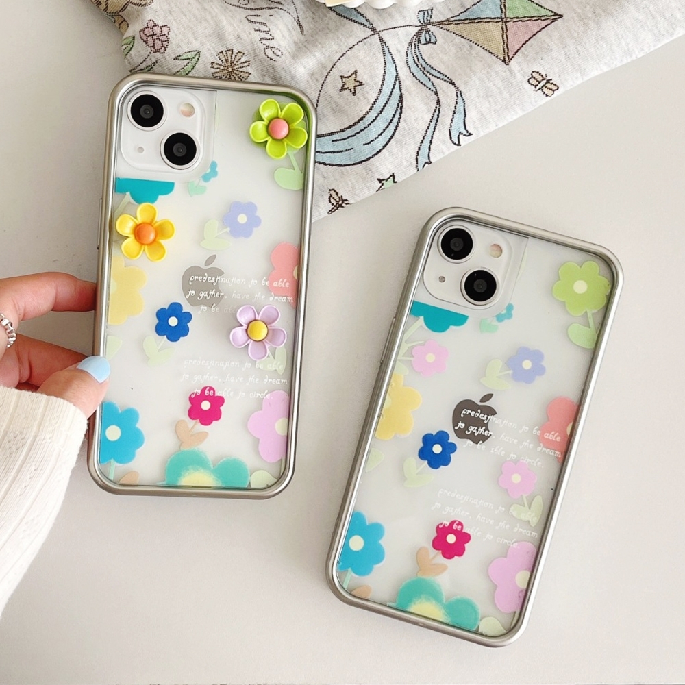 아이폰 15 14 13 12 프로 맥스 Pro Max 입체 꽃 파츠 패턴 투명 실리콘 케이스