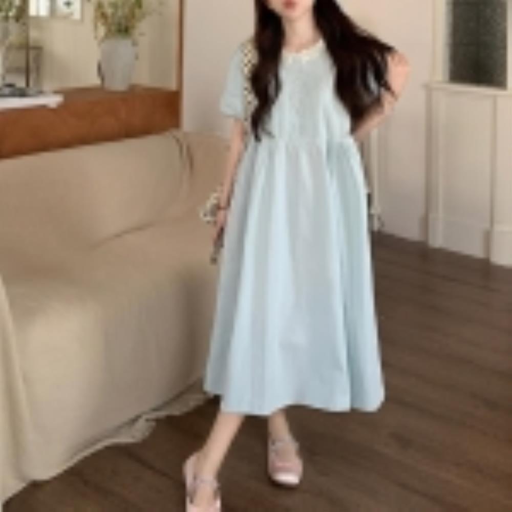 여자 여성스러운 카라 레이스 SS 논시스루 핀턱 원피스