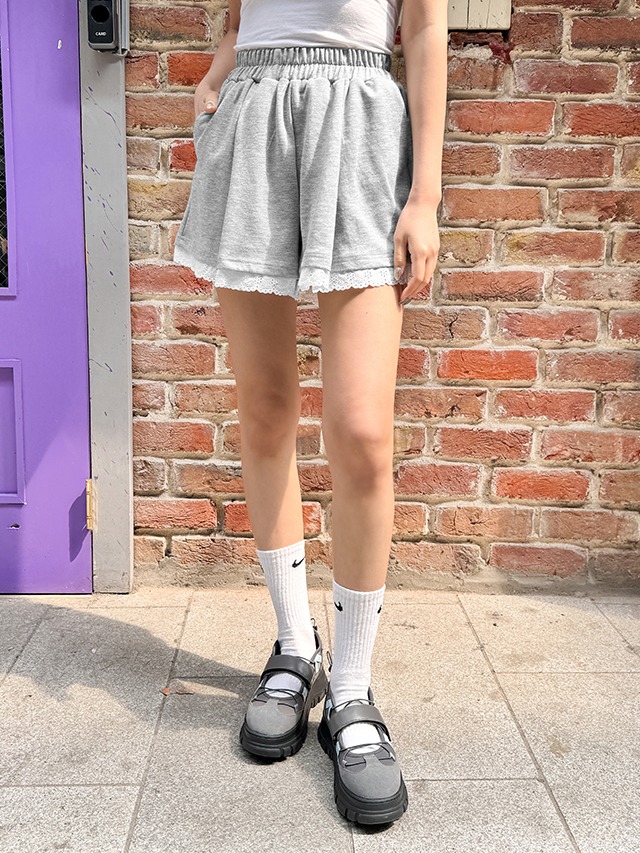 빅사이즈 S-2XL 치칫 핀턱 레이스 밴딩 쇼츠 반바지 장마룩