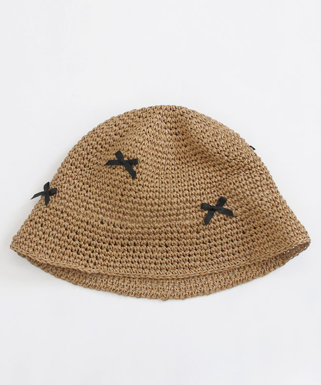 HAT 블랙 리본 라탄 버킷햇 [2COLOR]