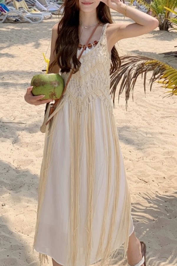 set 휴가룩 화이트 나시 롱원피스 레이어드 뜨개질 원피스 투피스세트